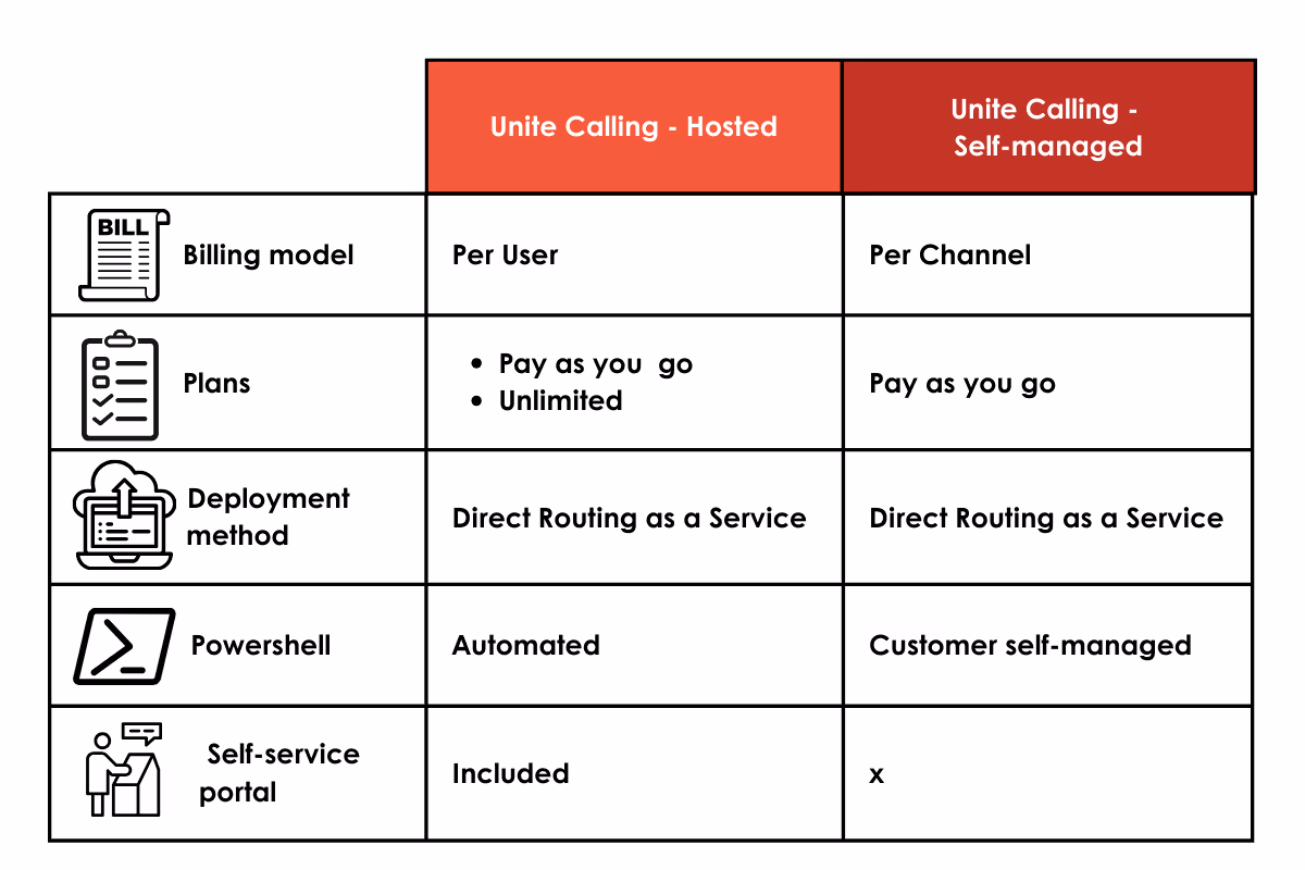 With support for Per User and Per Channel billing, a choice of PAYG and included value plans, and carrier automation as standard, Unite Calling gives you more options to manage the cost of Teams calling. A win for you, and your customers.
